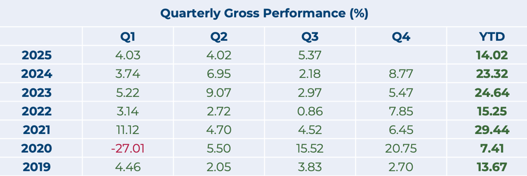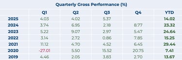 All Performance Numbers are Gross and Do Not Include Expenses, Management, or Performance Fees.